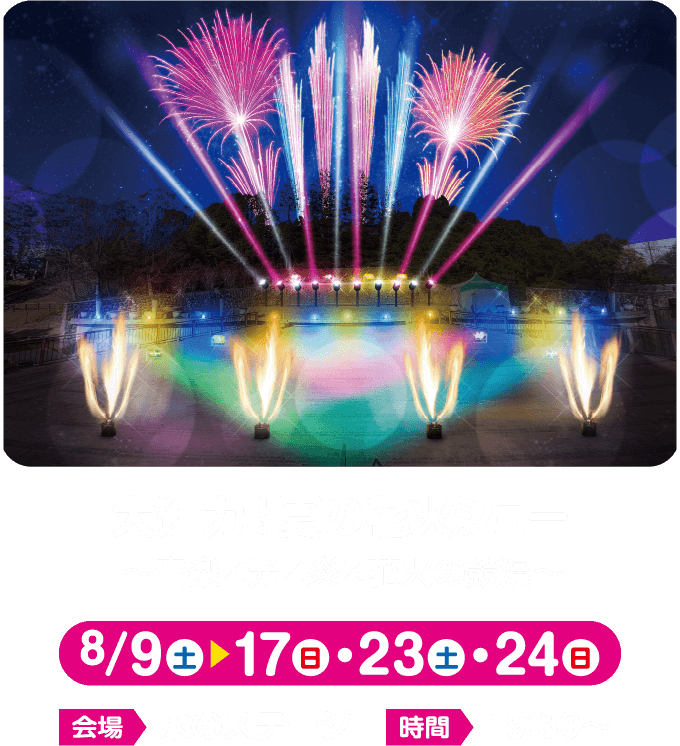 暑くて日中は外で遊べないので、夜まで営業してくれるのはありがたいです。花火は光と音楽もあり子供には丁度良く楽しめる感じでした。