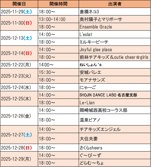 2025-11-29(土) 〜 2025-12-29(月)|全20回