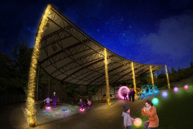 冬のデンパークは、「星降るひかりの森」をテーマにしたイルミネーションとライトアップで、美しく光輝くクリスマスイベントを楽しめます。