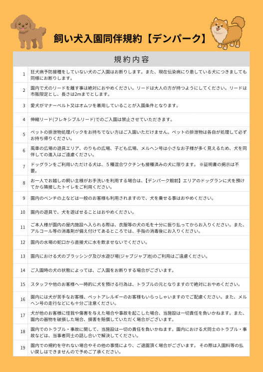 大切な愛犬とデンパークにご入園いただくにあたり、ルールがありますのでご確認ください。