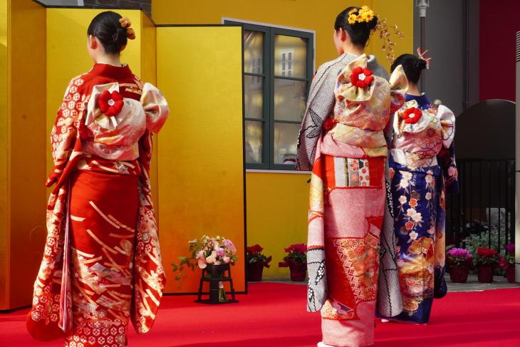 十二単・直衣・振袖・帯と花をテーマとした着物ショー