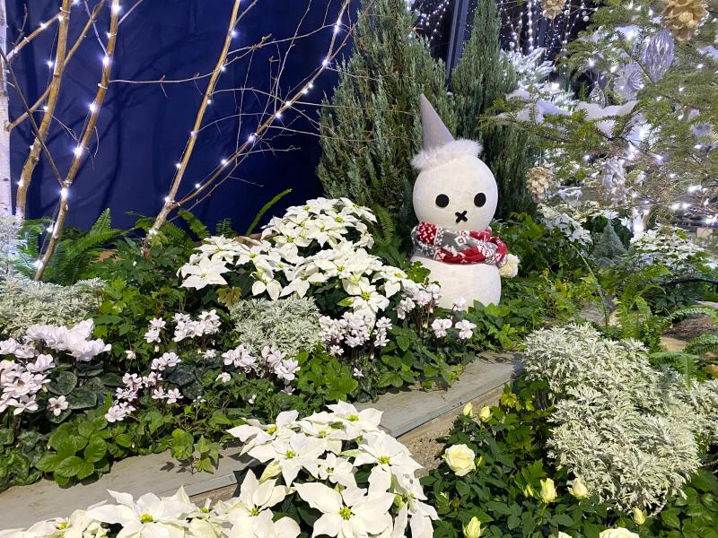 掲載:2025年11月29日 フローラルプレイス内ガーデンルーム 寒々とした冬の森で雪だるまたちが遊んでいます。 雪の積もったモミの木や白い植物で辺りは一面の銀世界。 プリンセチア、シルバーリーフなど約30品種750株冬の植物をお楽しみください。 期間:1月12日(月)まで